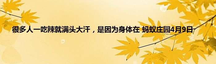 你能吃辣吗?很多人一吃辣就满头大汗,是因为身体在?有的人喜欢吃辣,但是有的人也很怕吃辣。很多人一吃辣就满头大汗,是因为身体在?这是支付宝蚂蚁庄园小课堂今日先行发布的4月9日问题,答对即可获得一份180g饲料,那么接下来就让我们一起了解一下正确答案吧!