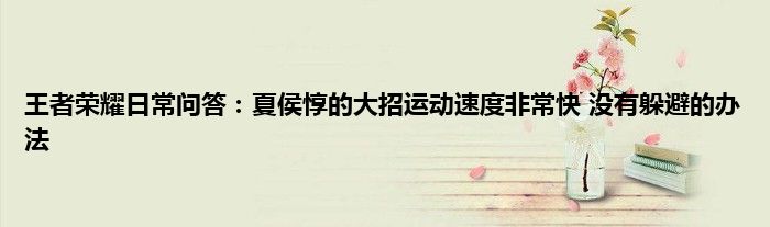 今天来聊聊关于王者荣耀日常问答:夏侯惇的大招运动速度非常快,没有躲避的办法的文章,游戏是很多人的选择,但是游戏玩多了也会身心疲惫,现在就为大家来简单介绍下王者荣耀日常问答:夏侯惇的大招运动速度非常快,没有躲避的办法,希望对各位小伙伴们有所帮助。