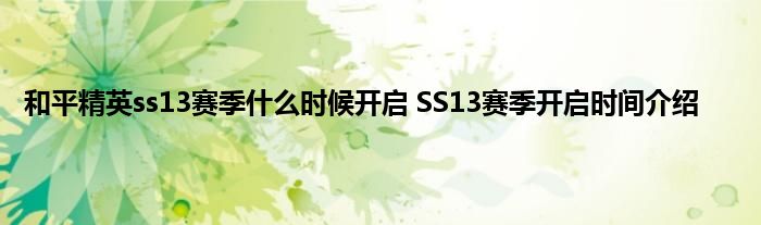 以上就是小编为大家带来的和平精英ss13赛季开启时间,希翼对各位玩家有所帮助。