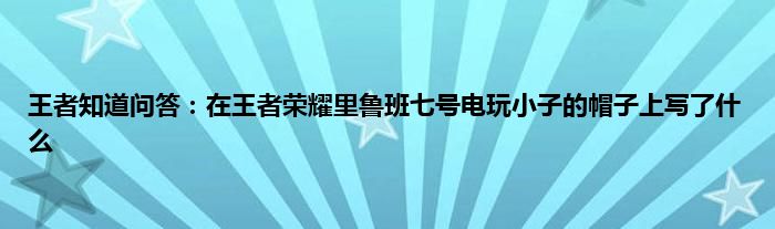 以上就是王者知道问答:在王者荣耀里鲁班七号电玩小子的帽子上写了什么的推荐,相信通过王者知道问答:在王者荣耀里鲁班七号电玩小子的帽子上写了什么这篇文章能帮到你,也欢迎对游戏很感兴趣小伙伴们一起来探讨。