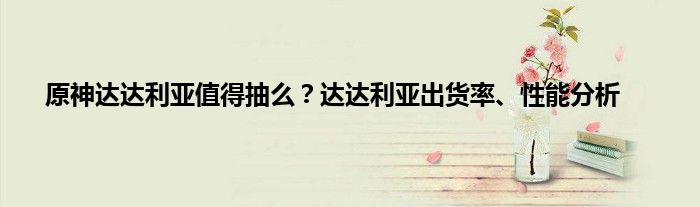 原神游戏中,有很多角色,这些角色各有各的特点,今天为大家带来达达利亚的分析,达达利亚的抽卡概率、以及能力属性分析。。这次应该算是玩家猎取达达利亚的最后一次机会,又到了每期的纠结时刻:值得抽么?抽了后面还有更香的咋办?