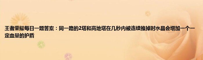 今天来聊聊关于王者荣耀每日一题答案:同一路的2塔和高地塔在几秒内被连续推掉时水晶会增加一个一定血量的护盾的文章,游戏是很多人的选择,但是游戏玩多了也会身心疲惫,现在就为大家来简单介绍下王者荣耀每日一题答案:同一路的2塔和高地塔在几秒内被连续推掉时水晶会增加一个一定血量的护盾,希望对各位小伙伴们有所帮助。