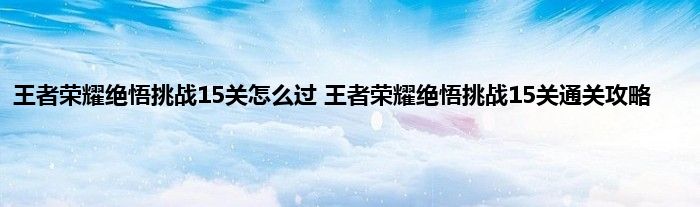 感谢你在百忙之中抽出时间阅读王者荣耀绝悟挑战15关怎么过 王者荣耀绝悟挑战15关通关攻略这篇文章。你觉得今天王者荣耀绝悟挑战15关怎么过 王者荣耀绝悟挑战15关通关攻略话题怎么样?关于王者荣耀绝悟挑战15关怎么过 王者荣耀绝悟挑战15关通关攻略这篇文章的任何评论都可以告诉我。你的每一个建议都是对小编辑的肯定和鼓舞。小编明天会继续给你带来更多的好内容。我希翼你不要错过。感谢支持哟!
