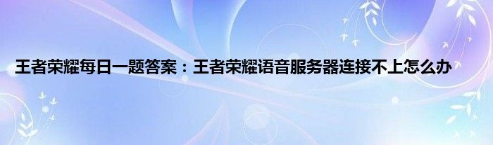 以上就是王者荣耀每日一题答案:王者荣耀语音服务器连接不上怎么办的推荐,相信通过王者荣耀每日一题答案:王者荣耀语音服务器连接不上怎么办这篇文章能帮到你,也欢迎对游戏很感兴趣小伙伴们一起来探讨。