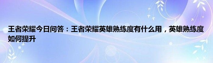 问:王者荣耀英雄熟练度有什么用?英雄熟练度如何提升?