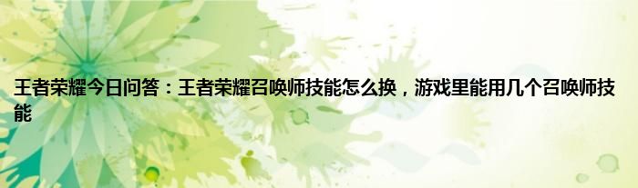 问:王者荣耀召唤师技能怎么换?游戏里能用几个召唤师技能?