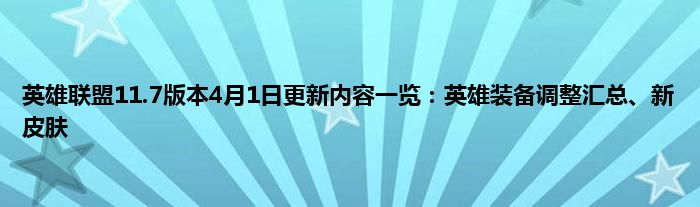 英雄联盟11.7版本4月1日更新内容一览:英雄装备调整汇总、新皮肤