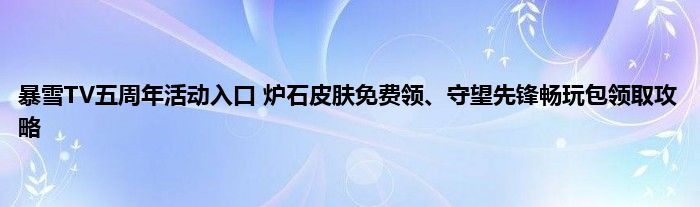 暴雪TV五周年活动入口炉石皮肤免费领、守望先锋畅玩包领取攻略