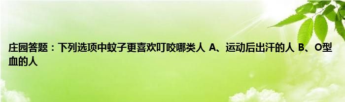 庄园答题:下列选项中蚊子更喜欢叮咬哪类人 A、运动后出汗的人 B、O型血的人
