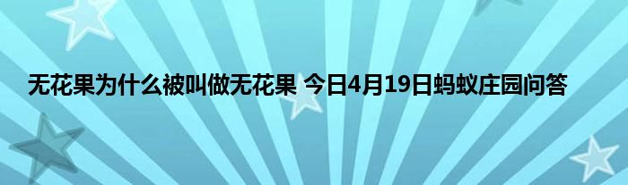 无花果为什么被叫做无花果 今日4月19日蚂蚁庄园问答