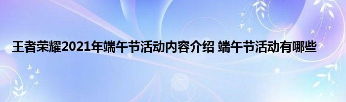 2021年的端午节即将就要到了,在王者荣耀这个游戏里面也给玩家们带来了很多的活动玩法,不少玩家不知道今年的端午节活动有哪些,以及端午节活动要怎么来玩了,那下面就让小编给玩家们带来端午节活动和玩法的相关介绍,希翼这篇攻略能顾给需要的玩家们带来帮助,一起看下吧。