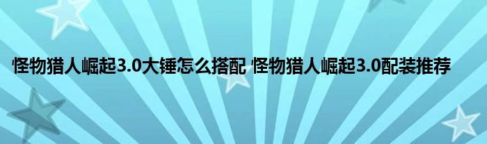 怪物猎人崛起3.0大锤怎么搭配?怪物猎人崛起3.0已经上线了新的版本,这个新版本也有很多的新装备和技能。因此在配装上也让一些玩家陷入了迷茫。这里带来了具体的配装攻略,希翼大家喜欢。