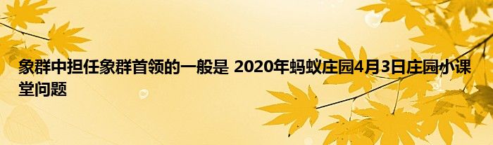 关于到现在象群中担任象群首领的一般是 2020年蚂蚁庄园4月3日庄园小课堂问题话题,相信很多小伙伴都是非常有兴趣了解的吧,因为这个话题也是近期非常火热的,那么既然现在大家都想要知道象群中担任象群首领的一般是 2020年蚂蚁庄园4月3日庄园小课堂问题,小编也是到网上收集了一些与象群中担任象群首领的一般是 2020年蚂蚁庄园4月3日庄园小课堂问题相关的信息,那么下面分享给大家一起了解下吧