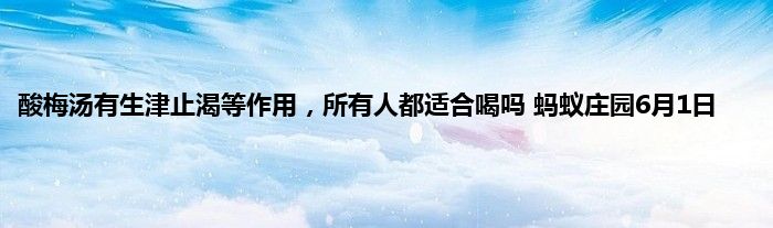 酸梅汤是我们日常经常见到的饮料,夏天冰镇酸梅汤很多人都喜欢。酸梅汤有生津止渴等作用,是所有人都适合喝吗?这是支付宝蚂蚁庄园小课堂今日先行发布的6月2日问题,答对即可获得一份180g饲料,那么接下来就让我们一起了解一下正确答案吧!