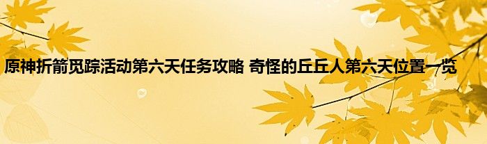 原神折箭觅踪活动进行到了第六天,折箭觅踪活动是原神最新开启的活动之一,活动奖励丰富,今天是第六天,今天的任务已经出来了,很多人找不到要接任务的丘丘人的位置,小编整理收集了这些丘丘人的位置,下面就来一起看看吧。