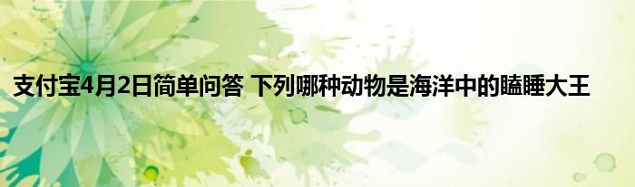 今天来聊聊关于支付宝4月2日简单问答 下列哪种动物是海洋中的瞌睡大王 的文章,游戏是很多人的选择,但是游戏玩多了也会身心疲惫,现在就为大家来简单介绍下支付宝4月2日简单问答 下列哪种动物是海洋中的瞌睡大王 ,希望对各位小伙伴们有所帮助。