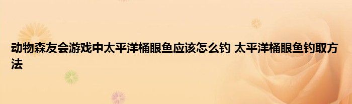 动物森友会游戏中太平洋桶眼鱼应该怎么钓 太平洋桶眼鱼钓取方法最近这个话题比较热门,很多小伙伴就会在问动物森友会游戏中太平洋桶眼鱼应该怎么钓 太平洋桶眼鱼钓取方法,那么小编我特意整理了动物森友会游戏中太平洋桶眼鱼应该怎么钓 太平洋桶眼鱼钓取方法相关的资讯,感兴趣的小伙伴们就跟着小编一起看看吧。