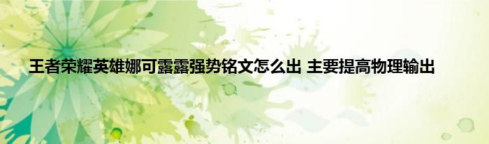 今天来聊聊关于王者荣耀英雄娜可露露强势铭文怎么出 主要提高物理输出的文章,游戏是很多人的选择,但是游戏玩多了也会身心疲惫,现在就为大家来简单介绍下王者荣耀英雄娜可露露强势铭文怎么出 主要提高物理输出,希望对各位小伙伴们有所帮助。