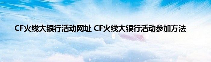 感谢你在百忙之中抽出时间阅读CF火线大银行活动网址 CF火线大银行活动参加方法这篇文章。你觉得今天CF火线大银行活动网址 CF火线大银行活动参加方法话题怎么样?关于CF火线大银行活动网址 CF火线大银行活动参加方法这篇文章的任何评论都可以告诉我。你的每一个建议都是对小编辑的肯定和鼓舞。小编明天会继续给你带来更多的好内容。我希翼你不要错过。感谢支持哟!