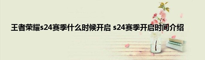 王者荣耀s24赛季开始时间: