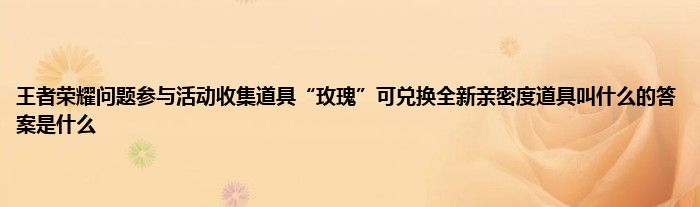 今天弟哥来聊聊一篇关于王者荣耀问题参与活动收集道具“玫瑰”可兑换全新亲密度道具叫什么的答案是什么的文章,游戏是很多人的选择,但是游戏玩多了也会身心疲惫,现在就为大家来简单介绍下王者荣耀问题参与活动收集道具“玫瑰”可兑换全新亲密度道具叫什么的答案是什么,希望对各位小伙伴们有所帮助。