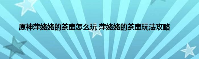 原神最近曝光了一个新玩法:萍姥姥的茶壶,将在1.5版本更新后上线。那么萍姥姥的茶壶是什么,这个新玩法怎么玩呢?下面一起来看看吧~