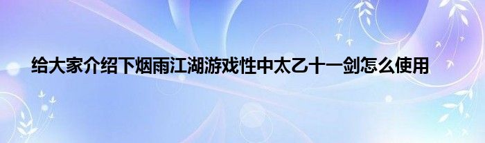 烟雨江湖中太乙十一剑是很多玩家都听到过的一个词,那么到底要怎么使用呢?希望下面这篇太乙十一剑资料能帮到大家。