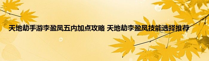 天地劫李盈凤五内加点攻略