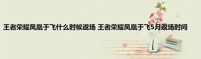 王者荣耀凤凰于飞预计在5月13日到5月16日期间返场。