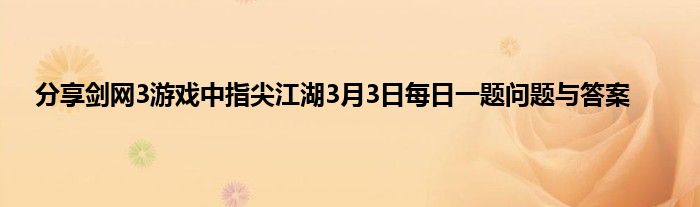 今天弟哥来聊聊一篇关于剑网3游戏中指尖江湖3月3日每日一题问题与答案的文章,游戏是很多人的选择,但是游戏玩多了也会身心疲惫,现在就为大家来简单介绍下剑网3游戏中指尖江湖3月3日每日一题问题与答案,希望对各位小伙伴们有所帮助。
