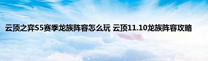 云顶之弈11.10版本之后,很多以前的玩法和阵容有了一些变化,但大体上玩法没有太大的改动,以前强力的阵容,现在依旧还是很能打的,下面就来带大家来看一下由零之QL带来的S5赛季龙族阵容玩法攻略,希翼能对大家有所启示。