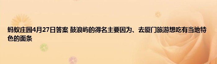 2021年4月27日蚂蚁庄园答案是什么?4月27日蚂蚁庄园的答案很多的玩家都不清晰,这两个问题有:鼓浪屿的得名主要因为?去厦门旅游,想吃有当地特色的面条,你应该点?下面小编给大家介绍一下具体的答案和解析,一起来看看吧。