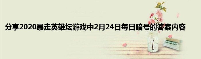 相信通过分享2020暴走英雄坛游戏中2月24日每日暗号的答案内容这篇文章能帮到你,也欢迎对游戏很感兴趣小伙伴们一起来探讨。