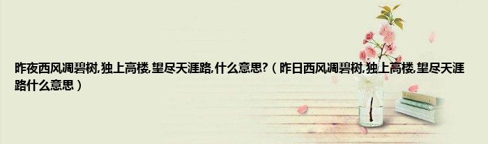 大家好,小科来为大家解答以上问题。昨夜西风凋碧树,独上高楼,望尽天涯路,什么意思?,昨日西风凋碧树,独上高楼,望尽天涯路什么意思很多人还不知道,现在让我们一起来看看吧!