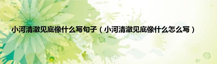 大家好,小科来为大家解答以上问题。小河清澈见底像什么写句子,小河清澈见底像什么怎么写很多人还不知道,现在让我们一起来看看吧!