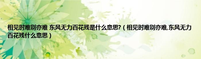 1、 这首诗的意思是,两个人见一面已经够难了,离别时刻更难。花开花落,东风吹寒,无情的寒风更添忧伤。诗出自《无题》李商隐。全文如下:
