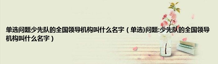 大家好,小科来为大家解答以上问题。单选问题少先队的全国领导机构叫什么名字,单选)问题:少先队的全国领导机构叫什么名字很多人还不知道,现在让我们一起来看看吧!