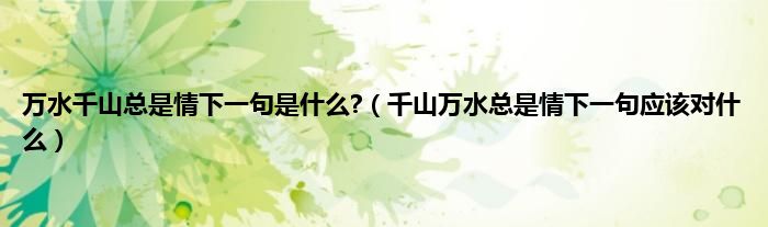 大家好,小科来为大家解答以上问题。万水千山总是情下一句是什么?,千山万水总是情下一句应该对什么很多人还不知道,现在让我们一起来看看吧!