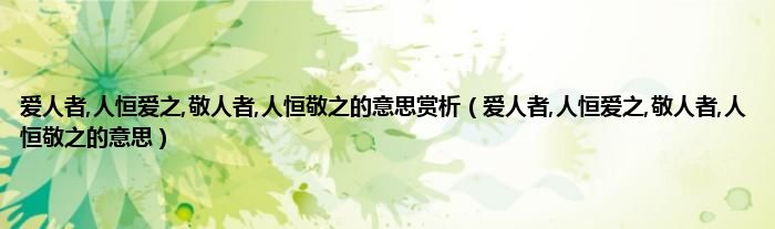 1、 意思是爱别人的人,别人也会一直爱他;尊重别人的人永远会被别人尊重。