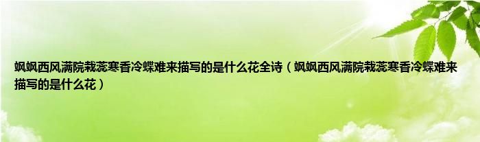 大家好,小科来为大家解答以上问题。飒飒西风满院栽蕊寒香冷蝶难来描写的是什么花全诗,飒飒西风满院栽蕊寒香冷蝶难来描写的是什么花很多人还不知道,现在让我们一起来看看吧!