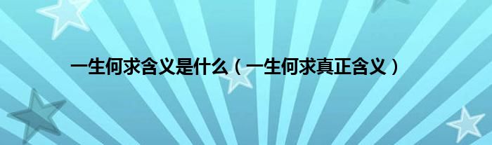 1、 一生何求真正含义的回答是:你一生追求什么?还是一辈子追求别的?这个词是从成语“夫复何求”翻译过来的。