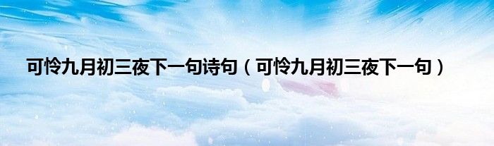 大家好,小科来为大家解答以上问题。可怜九月初三夜下一句诗句,可怜九月初三夜下一句很多人还不知道,现在让我们一起来看看吧!