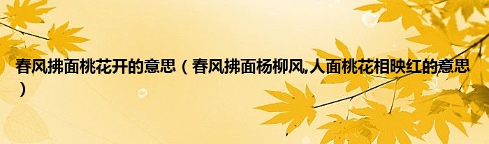 大家好,小科来为大家解答以上问题。春风拂面桃花开的意思,春风拂面杨柳风,人面桃花相映红的意思很多人还不知道,现在让我们一起来看看吧!