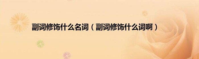 大家好,小科来为大家解答以上问题。副词修饰什么名词,副词修饰什么词啊很多人还不知道,现在让我们一起来看看吧!