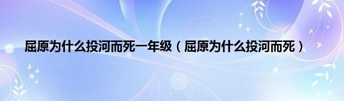 大家好,小科来为大家解答以上问题。屈原为什么投河而死一年级,屈原为什么投河而死很多人还不知道,现在让我们一起来看看吧!
