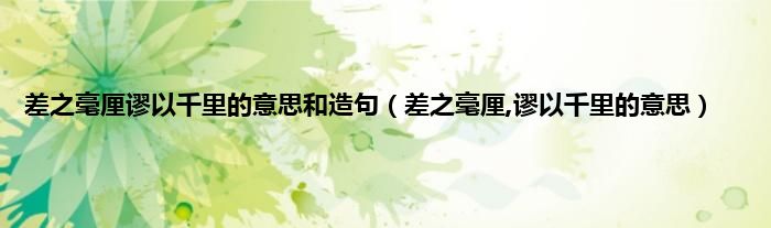 大家好,小科来为大家解答以上问题。差之毫厘谬以千里的意思和造句,差之毫厘,谬以千里的意思很多人还不知道,现在让我们一起来看看吧!