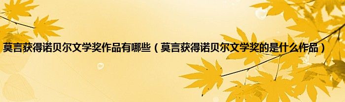 大家好,小科来为大家解答以上问题。莫言获得诺贝尔文学奖作品有哪些,莫言获得诺贝尔文学奖的是什么作品很多人还不知道,现在让我们一起来看看吧!