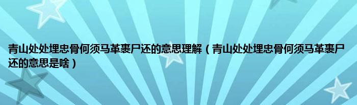 大家好,小科来为大家解答以上问题。青山处处埋忠骨何须马革裹尸还的意思理解,青山处处埋忠骨何须马革裹尸还的意思是啥很多人还不知道,现在让我们一起来看看吧!
