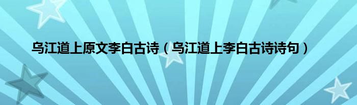 大家好,小科来为大家解答以上问题。乌江道上原文李白古诗,乌江道上李白古诗诗句很多人还不知道,现在让我们一起来看看吧!