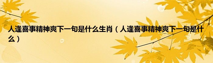 大家好,小科来为大家解答以上问题。人逢喜事精神爽下一句是什么生肖,人逢喜事精神爽下一句是什么很多人还不知道,现在让我们一起来看看吧!